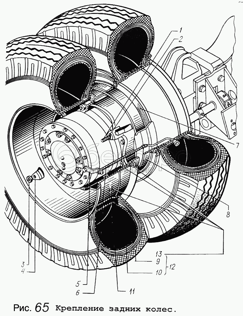 Каталог запасных частей к технике: МАЗ-5434. Крепление задних колес
