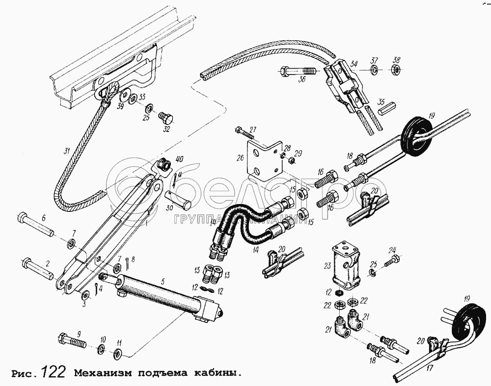 Каталог запасных частей к технике: МАЗ-5434. Механизм подъема кабины