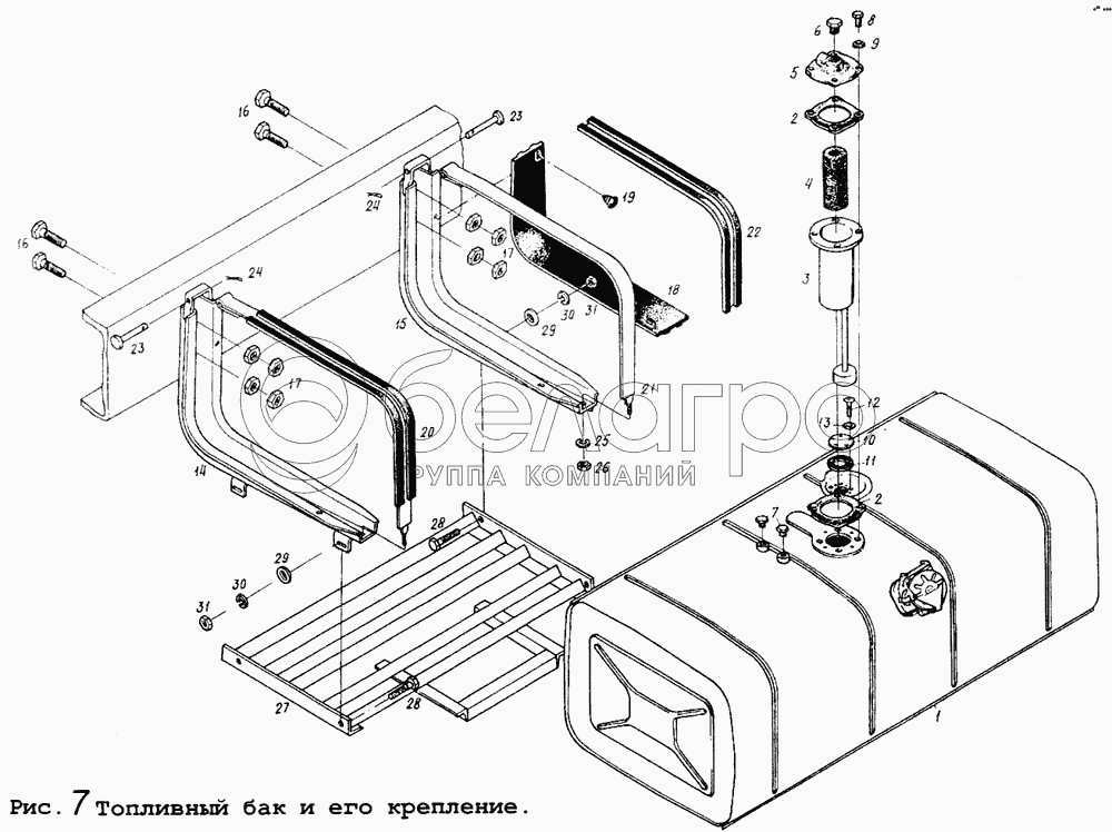 Каталог запасных частей к технике: МАЗ-5434. Топливный бак и его крепление