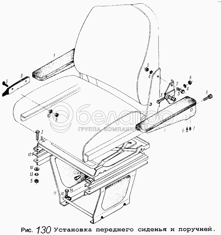 Каталог запасных частей к технике: МАЗ-5434. Установка переднего сиденья и поручней