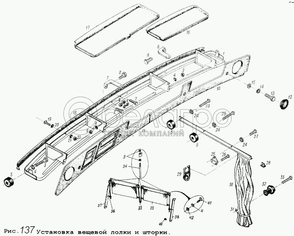 Каталог запасных частей к технике: МАЗ-5434. Установка вещевой полки и шторки