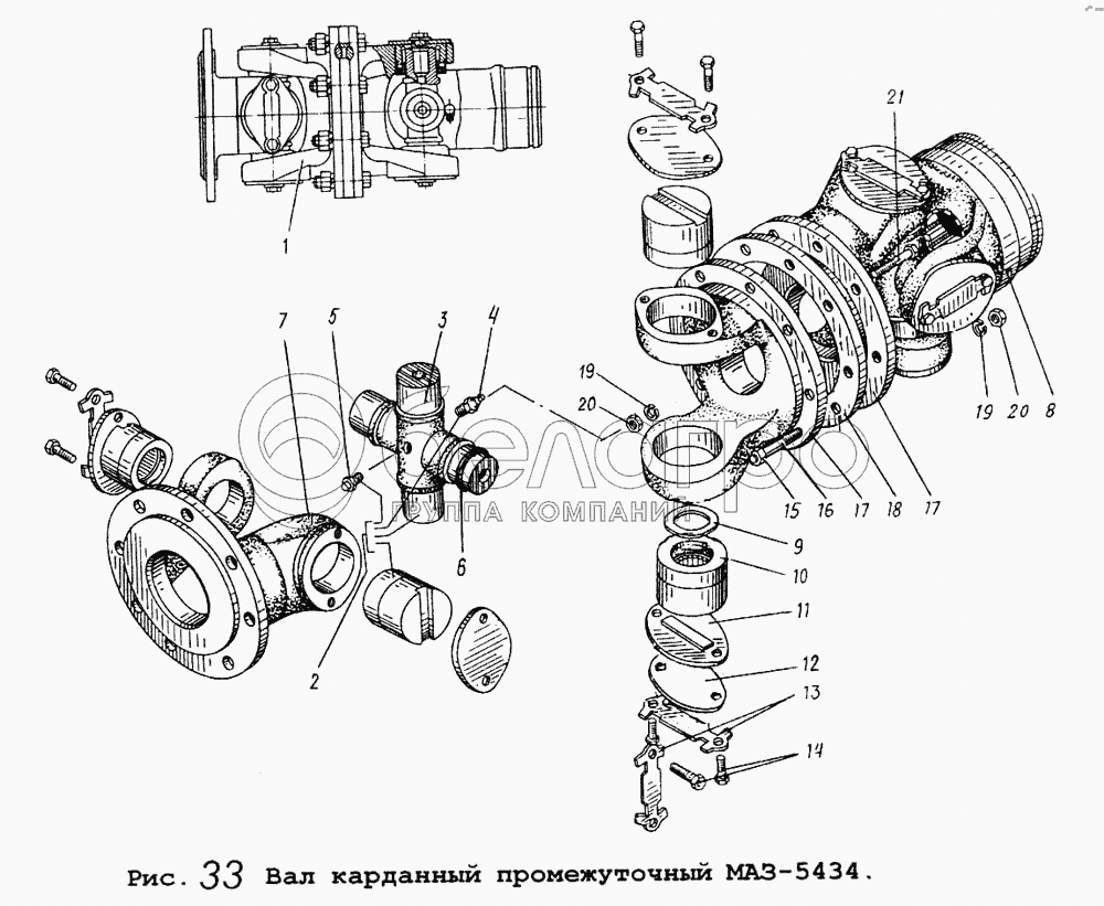 Каталог запасных частей к технике: МАЗ-5434. Вал карданный промежуточный МАЗ-5434