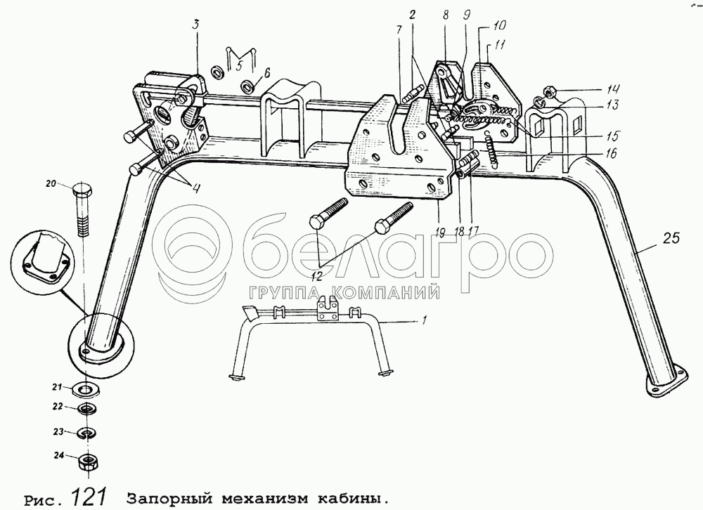 Каталог запасных частей к технике: МАЗ-5434. Запорный механизм кабины