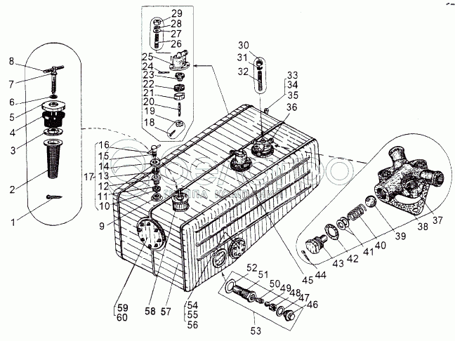 Каталог запасных частей к технике: МАЗ-543 (7310). Бак масляный двигателя 543-1018010