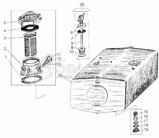 Каталог запасных частей к технике: МАЗ-543 (7310). Бак топливный 543В-1101010-11