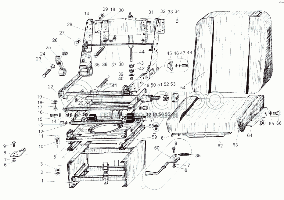 Каталог запасных частей к технике: МАЗ-543 (7310). Cиденье водителя 5551-6800010