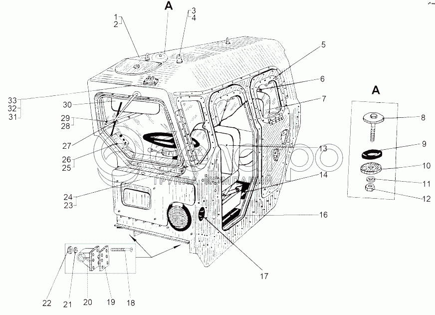 Каталог запасных частей к технике: МАЗ-543 (7310). Кабина левая 543-5000201, 543В-5000201