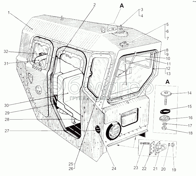 Каталог запасных частей к технике: МАЗ-543 (7310). Кабина правая 543-5000200, 543А-5000200