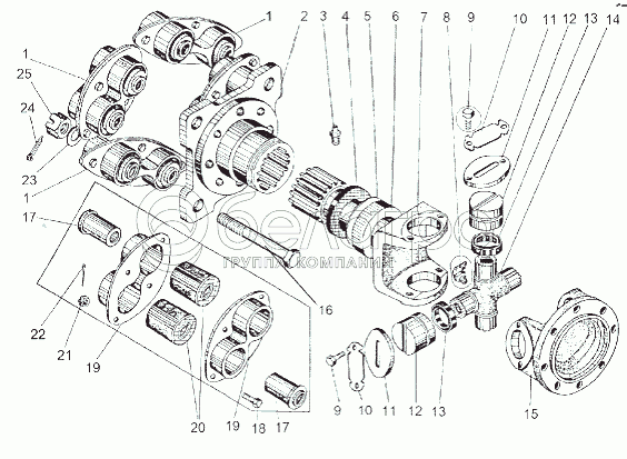 Каталог запасных частей к технике: МАЗ-543 (7310). Карданный вал 543-2208010