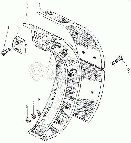 Каталог запасных частей к технике: МАЗ-543 (7310). Колодка тормоза 543-3501090-А