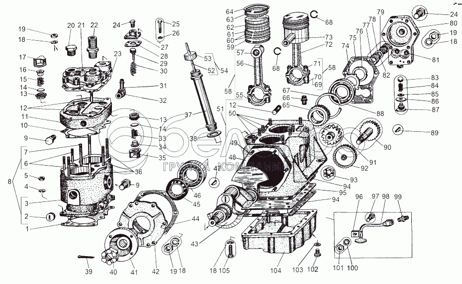 Каталог запасных частей к технике: МАЗ-543 (7310). Компрессор 543-3509015-20