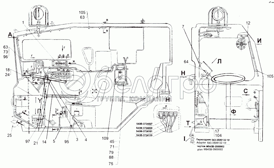 Каталог запасных частей к технике: МАЗ-543 (7310). Монтаж электрооборудования левой кабины