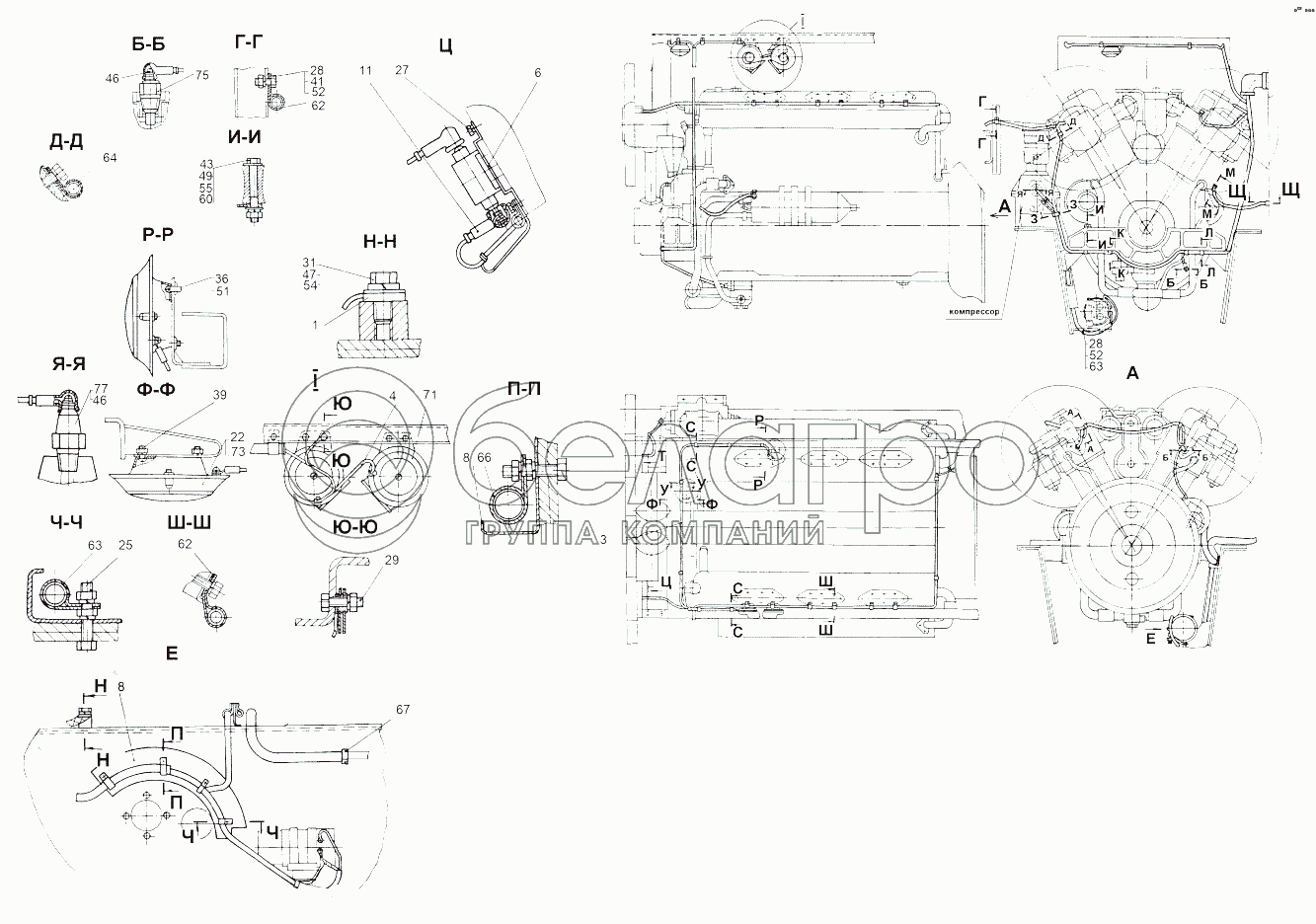 Каталог запасных частей к технике: МАЗ-543 (7310). Монтаж проводов по двигателю