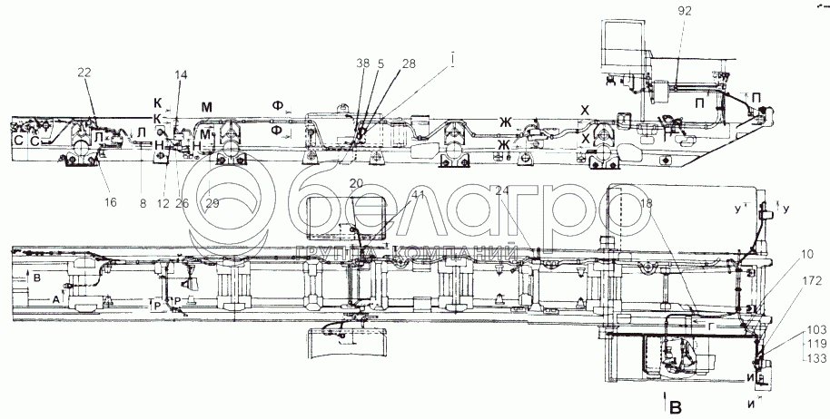 Каталог запасных частей к технике: МАЗ-543 (7310). Монтаж проводов по шасси