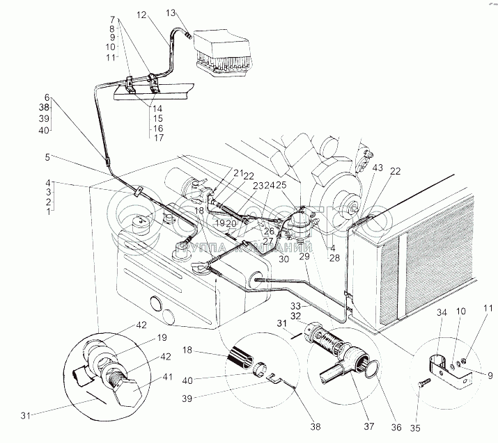 Каталог запасных частей к технике: МАЗ-543 (7310). Монтажная схема масляной системы двигателя 543М