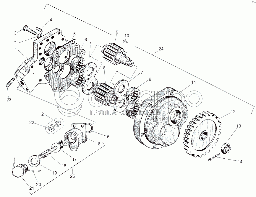 Каталог запасных частей к технике: МАЗ-543 (7310). Насос задний 543-1704110-10