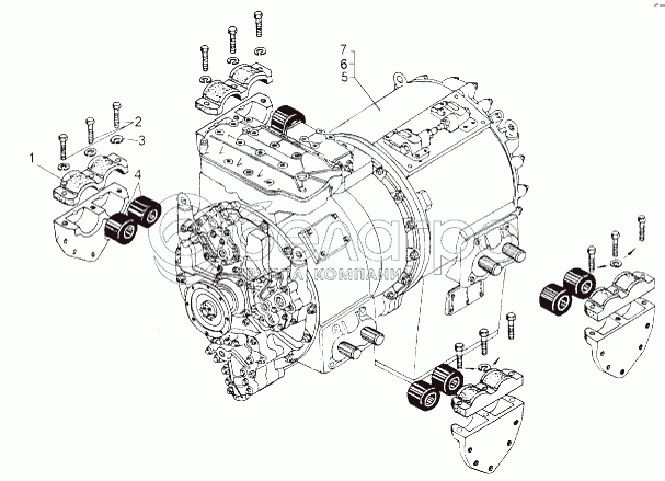 Каталог запасных частей к технике: МАЗ-543 (7310). Подвеска гидромеханической передачи
