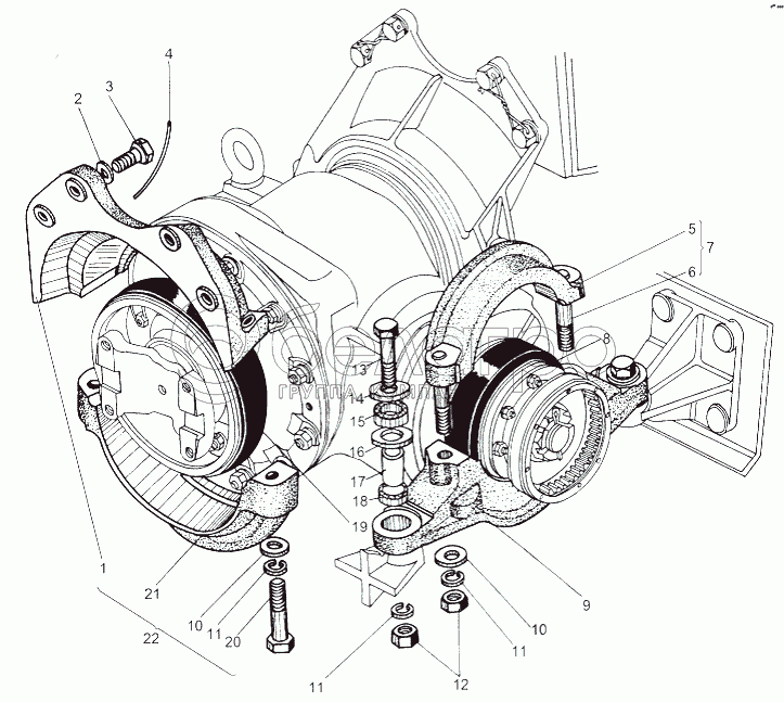 Каталог запасных частей к технике: МАЗ-543 (7310). Подвеска редукторов 543-2321025
