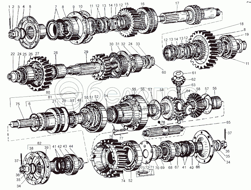 Каталог запасных частей к технике: МАЗ-543 (7310). Раздаточная коробка 543-1800020-07