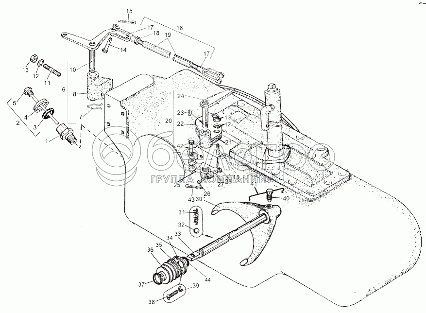 Каталог запасных частей к технике: МАЗ-543 (7310). Рычаги, тяга и вилка отключения трансмиссии