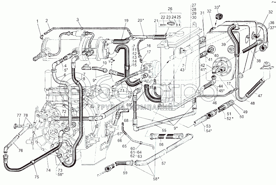 Каталог запасных частей к технике: МАЗ-543 (7310). Трубопроводы гидравлической системы ГМТ 543, 543А