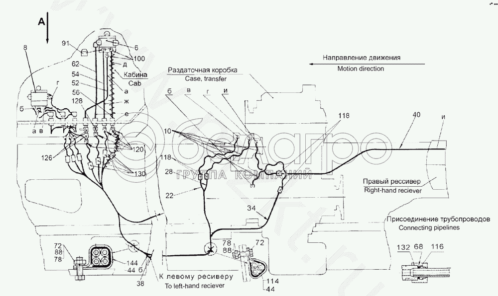 Каталог запасных частей к технике: МАЗ-543 (7310). Установка крана и трубопроводов управления РК
