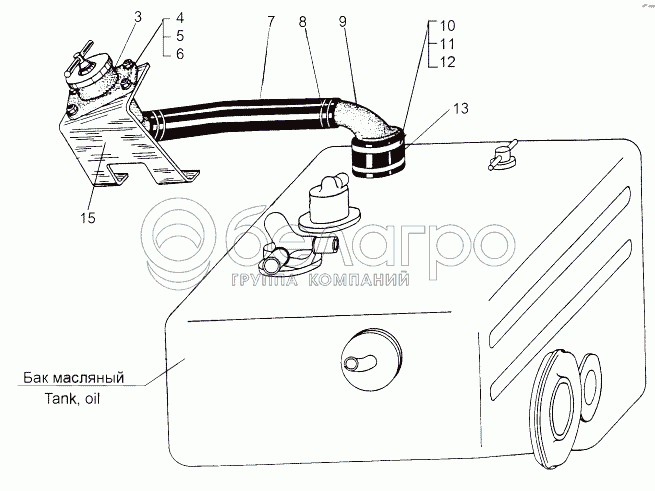 Каталог запасных частей к технике: МАЗ-543 (7310). Установка маслоналивной горловины 543М-1000034