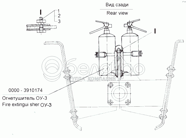 Каталог запасных частей к технике: МАЗ-543 (7310). Установка огнетушителей 543А-3900030