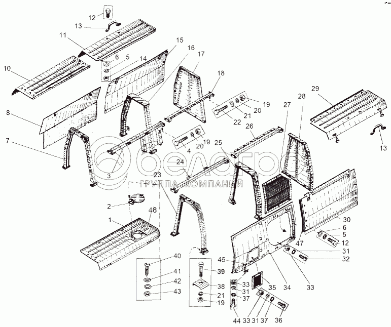 Каталог запасных частей к технике: МАЗ-543 (7310). Установка ограждения 543-8400009-10