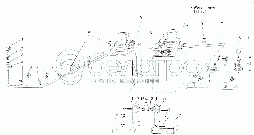 Каталог запасных частей к технике: МАЗ-543 (7310). Установка омывателей 543, 543А
