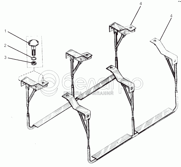 Каталог запасных частей к технике: МАЗ-543 (7310). Установка подножек 543-8400008, 543B-8400008