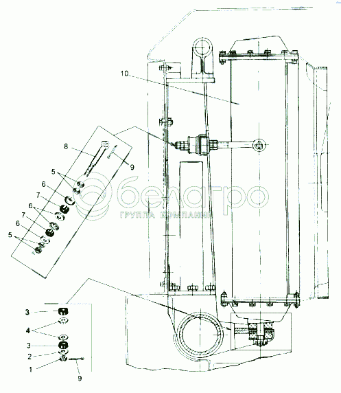 Каталог запасных частей к технике: МАЗ-543 (7310). Установка радиатора
