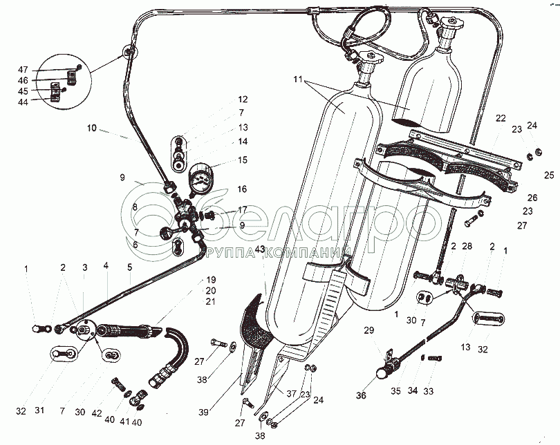 Каталог запасных частей к технике: МАЗ-543 (7310). Установка системы воздухопуска 543М