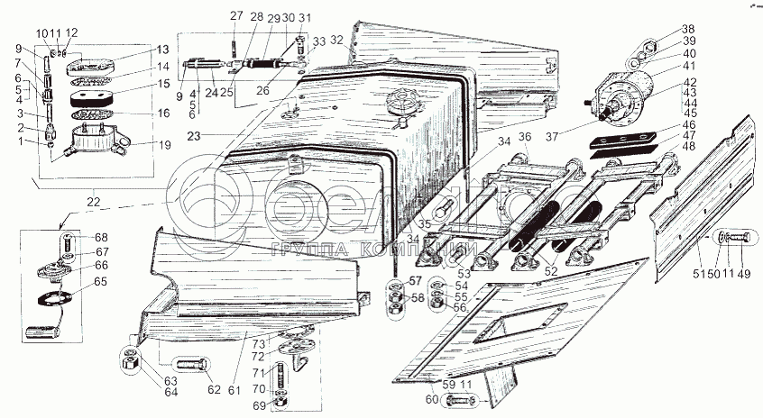 Каталог запасных частей к технике: МАЗ-543 (7310). Установка топливного бака 543 M