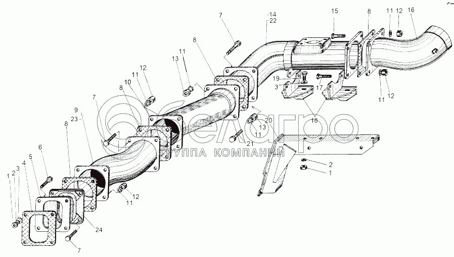 Каталог запасных частей к технике: МАЗ-543 (7310). Установка выхлопных труб 543 М