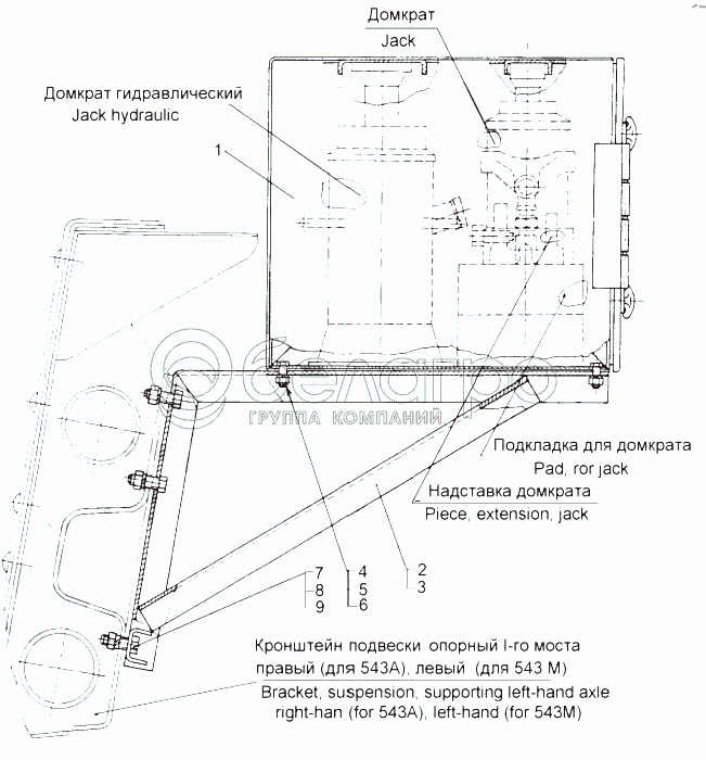 Каталог запасных частей к технике: МАЗ-543 (7310). Установка ящика III 543А-3900028-01