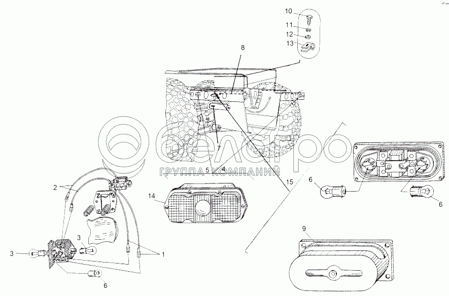Каталог запасных частей к технике: МАЗ-543 (7310). Установка задних фонарей