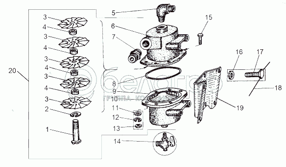 Каталог запасных частей к технике: МАЗ-543 (7310). Влагомаслоотделитель 543В-3511104, 543-3511104