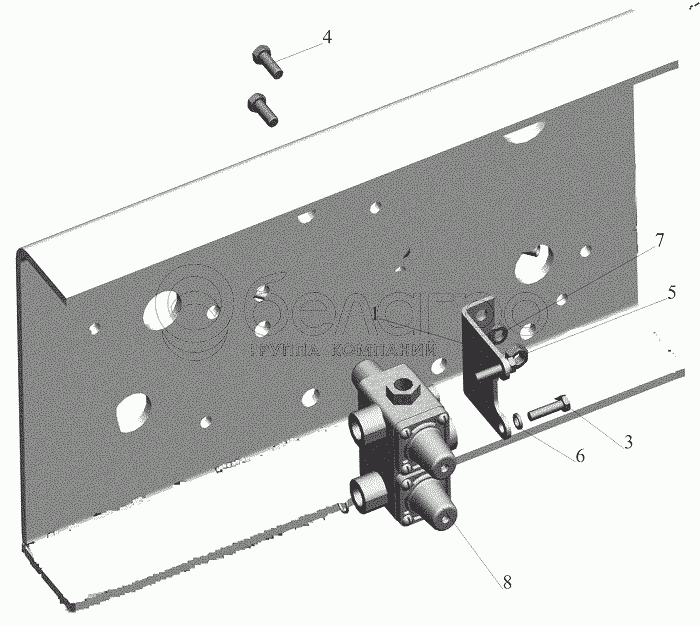 Каталог запасных частей к технике: МАЗ-544018. Крепление четырехконтурного клапана 544019-3515002