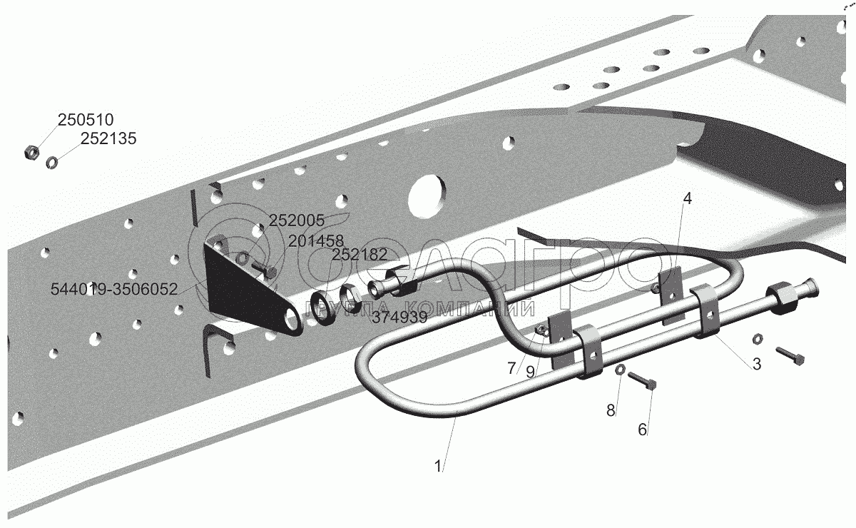 Каталог запасных частей к технике: МАЗ-544018. Крепление охладителя 544019-3506020