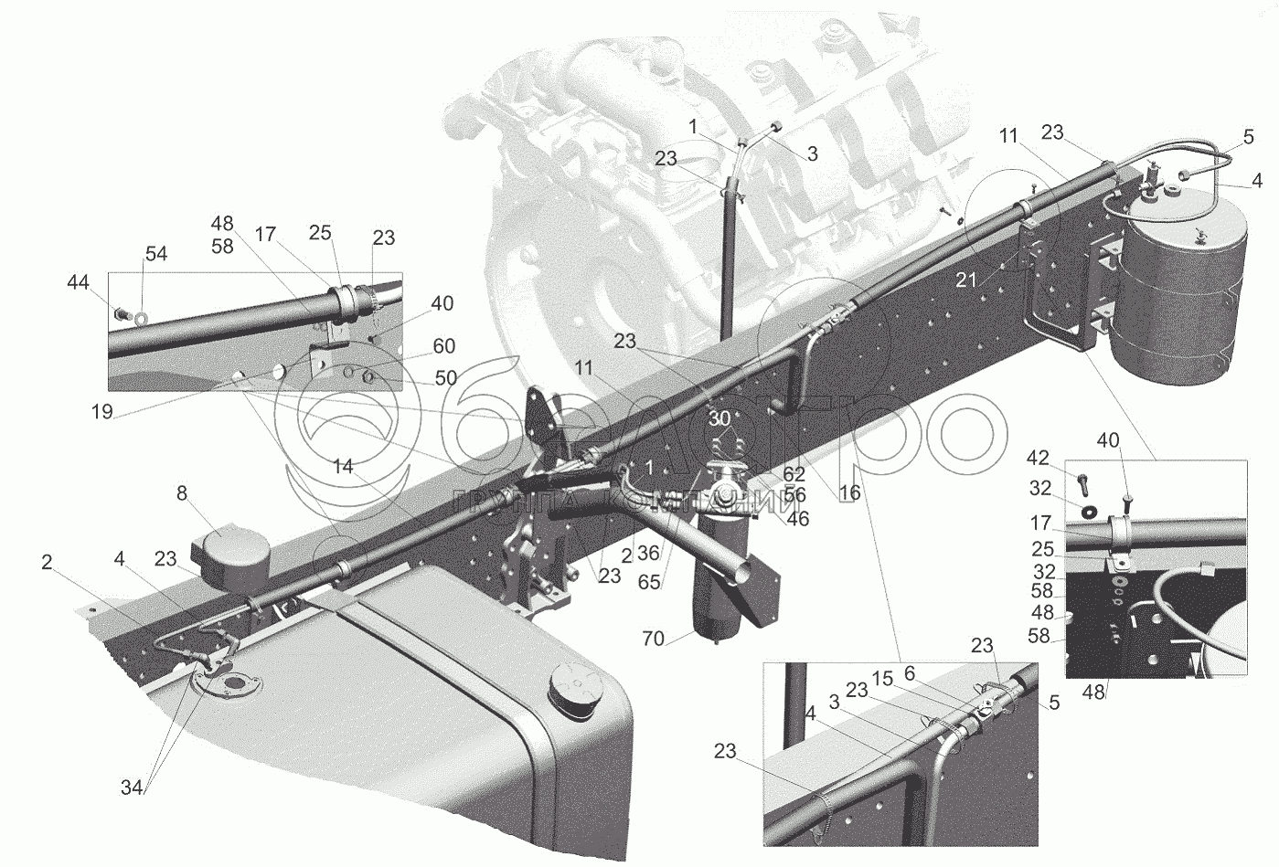 Каталог запасных частей к технике: МАЗ-544018. Крепление топливопроводов 544019-1104002