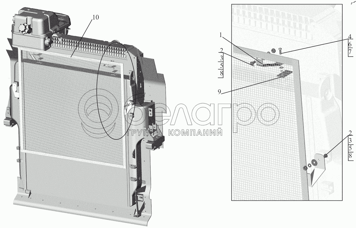 Каталог запасных частей к технике: МАЗ-544018. Крепление защитной сетки 544019-1300016