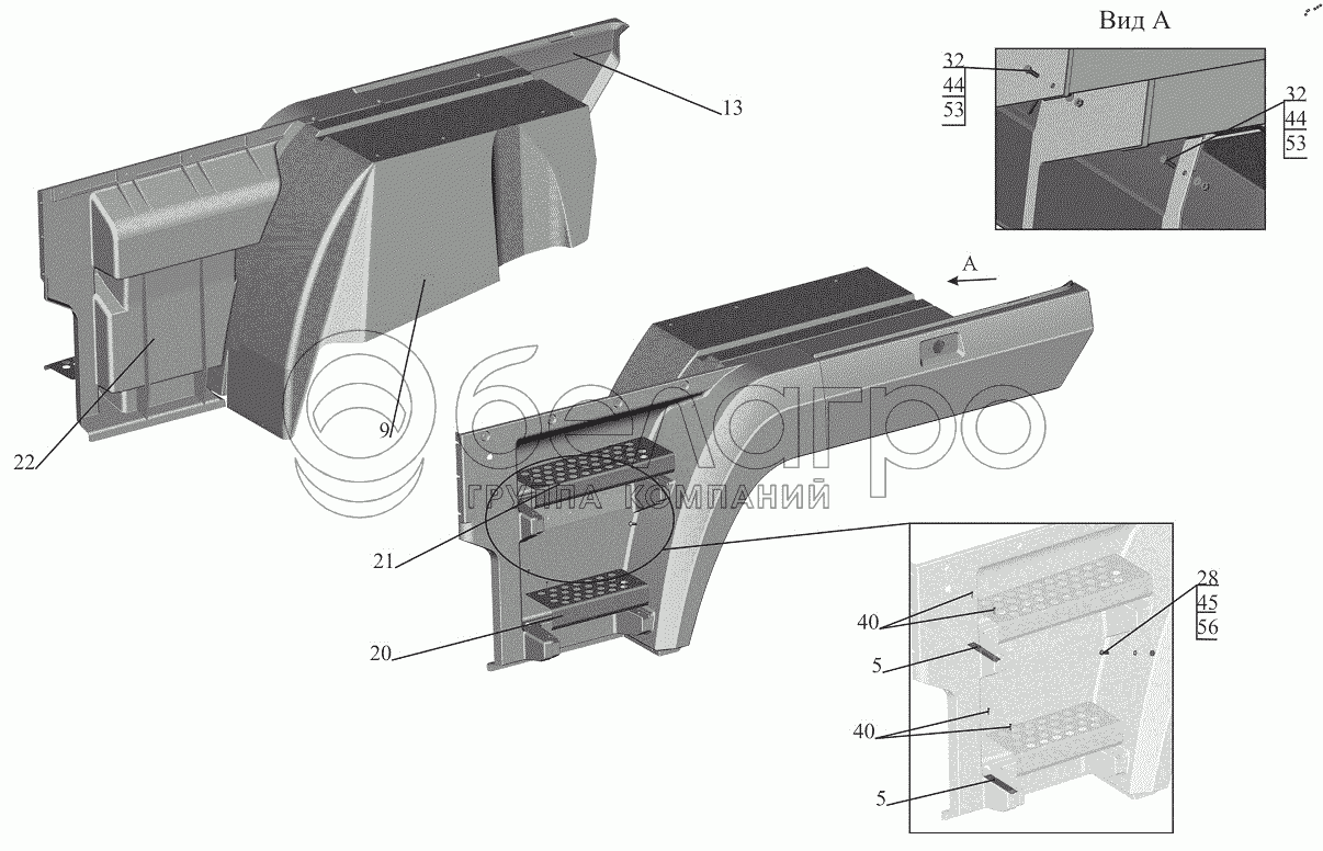 Каталог запасных частей к технике: МАЗ-544018. Оперение 6312-8400010-010