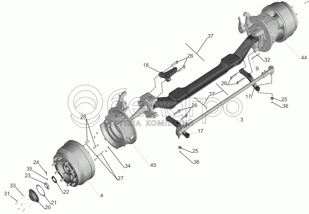 Каталог запасных частей к технике: МАЗ-544018. Передняя ось 544019-3000015