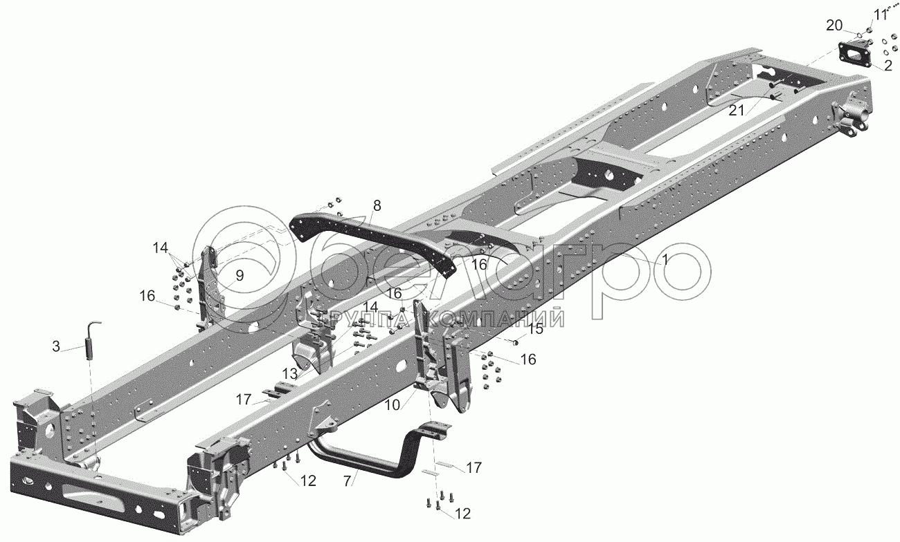 Каталог запасных частей к технике: МАЗ-544018. Рама 5440E9-2800010-030