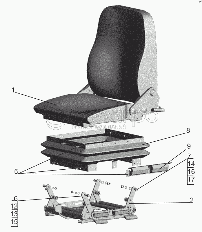 Каталог запасных частей к технике: МАЗ-544018. Сиденье водителя 6430-6800010