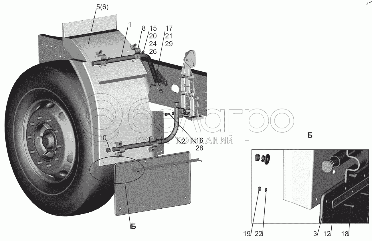 Каталог запасных частей к технике: МАЗ-544018. Установка брызговиков передних колес 643019-8400030