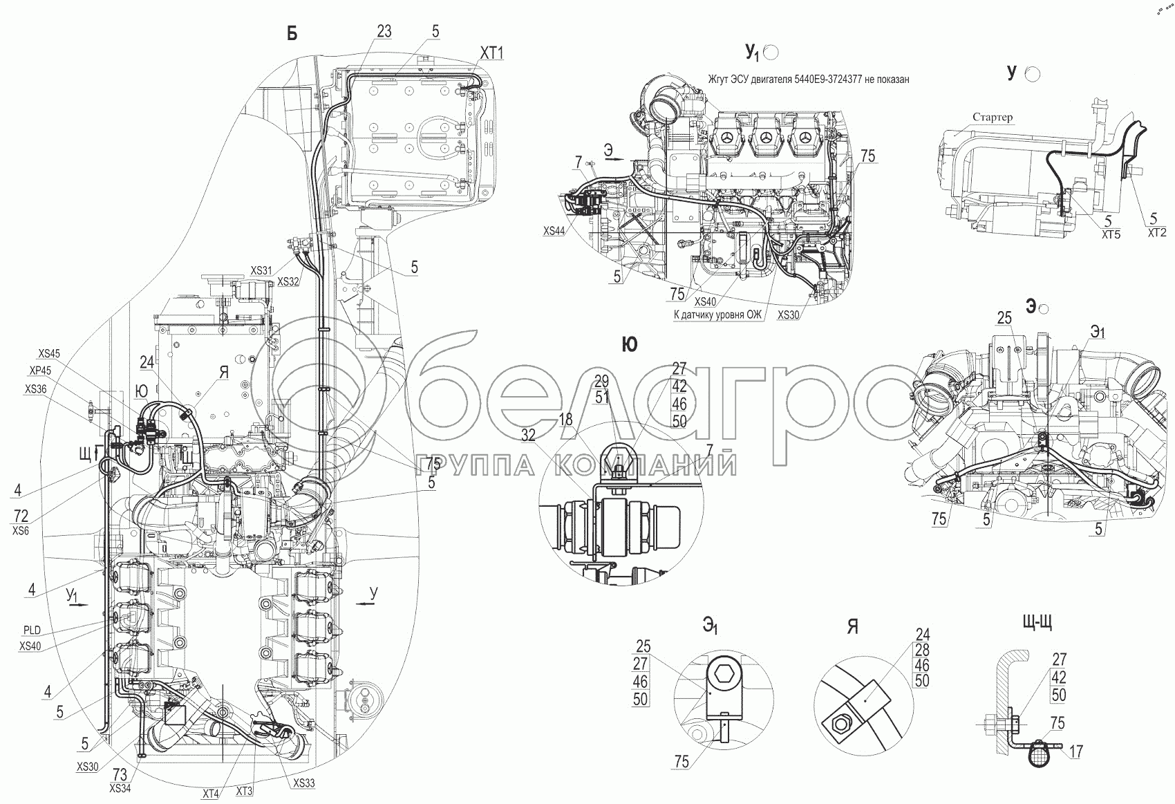 Каталог запасных частей к технике: МАЗ-544018. Установка электрооборудования ЭСУ двигателя