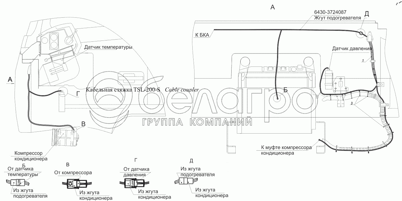 Каталог запасных частей к технике: МАЗ-544018. Установка электрооборудования кондиционера 643008-3700092