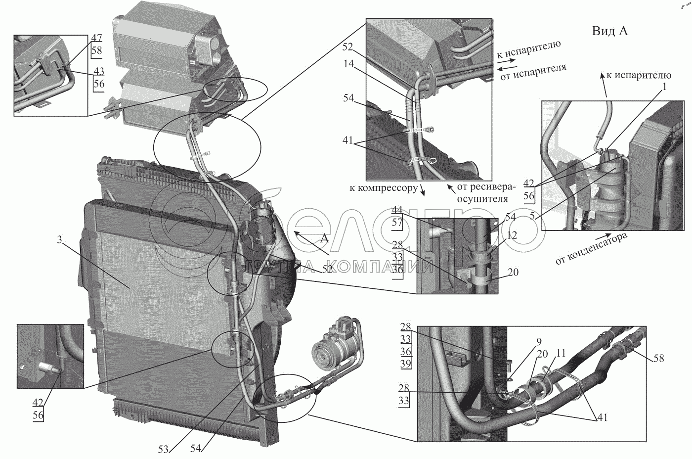 Каталог запасных частей к технике: МАЗ-544018. Установка кондиционера 544019-8100004